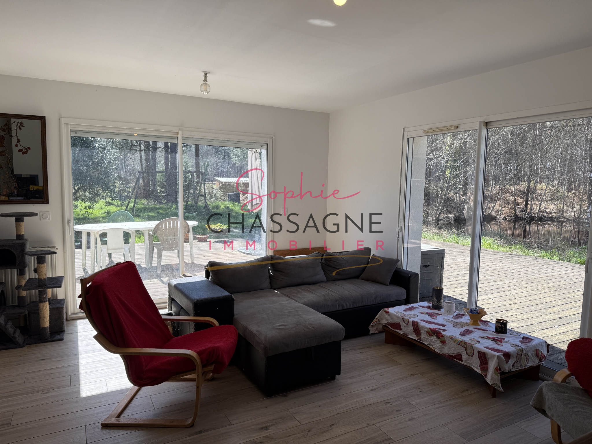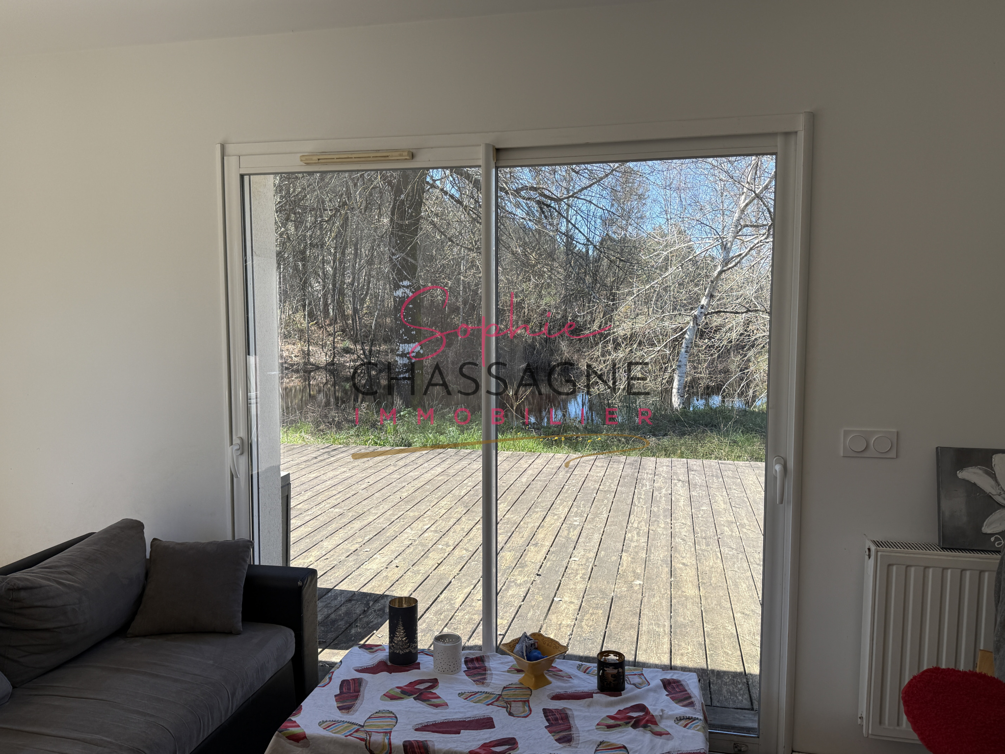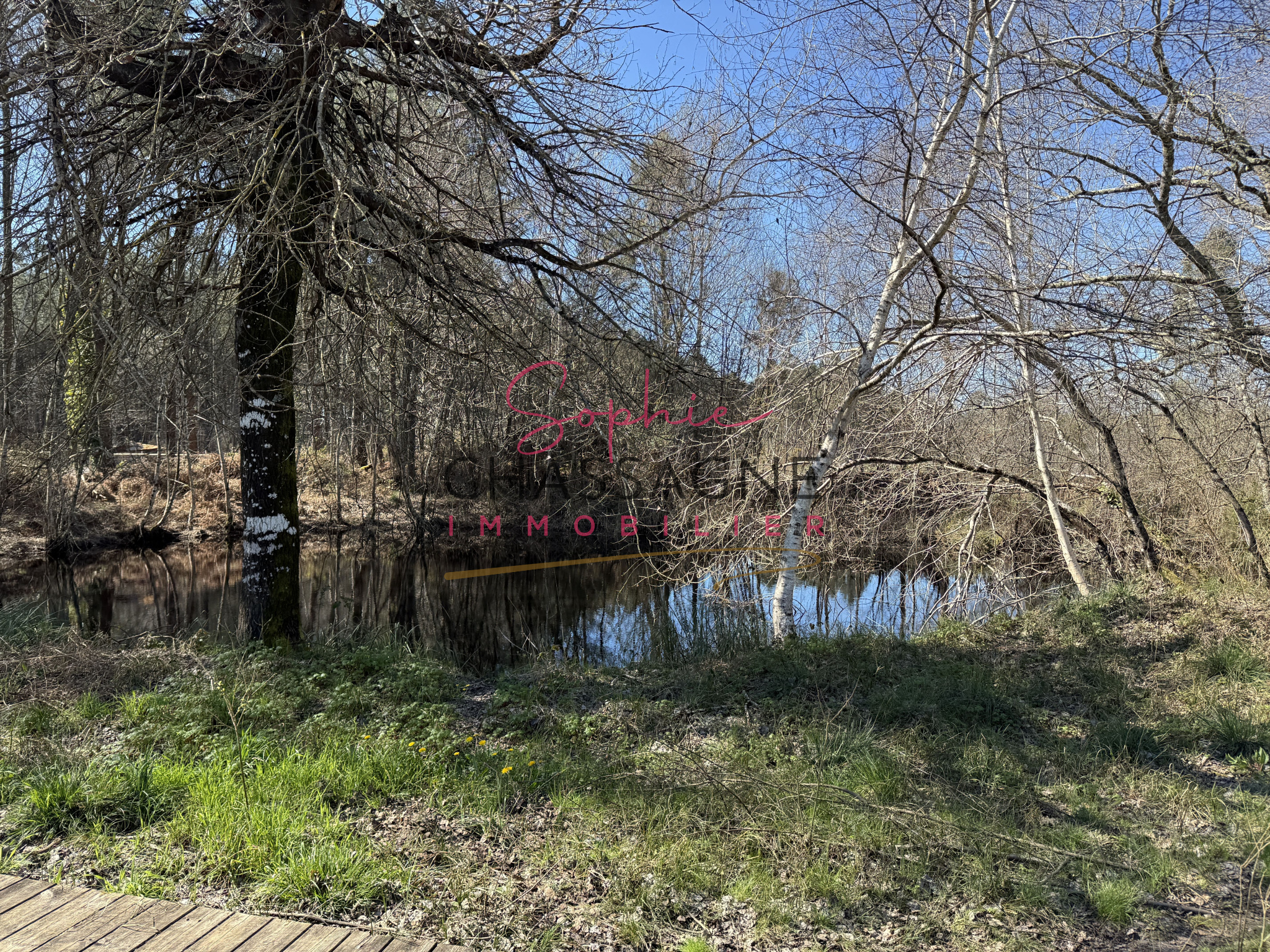 Le chauffage est assuré par pompe à chaleur. Une agréable terrasse en teck permet de profiter d’une belle vue dégagée sur l’étang.