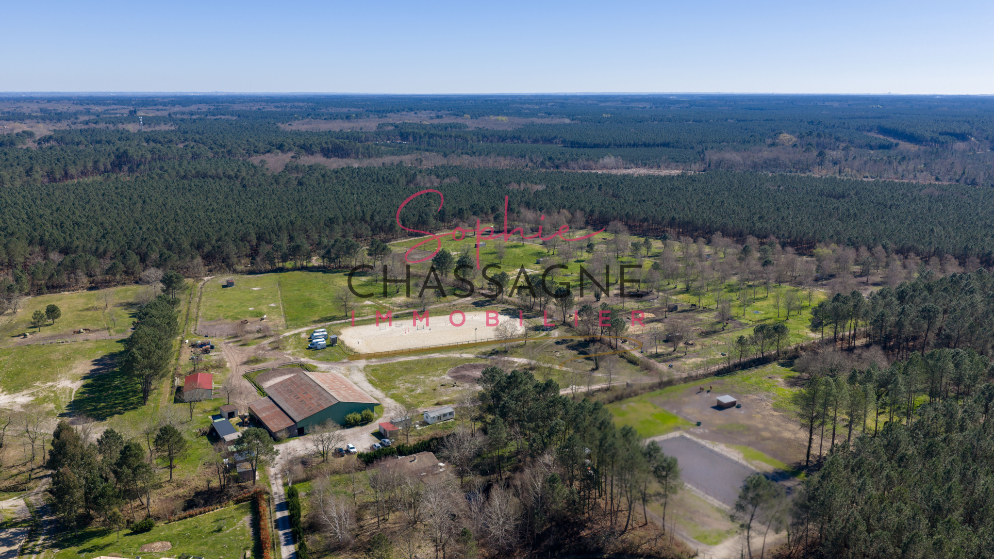 Lacanau (33680)À seulement 20 minutes de Lacanau, sur plus de 10 hectares, cette propriété équestre offre des installations complètes ainsi qu’une maison récente, idéale pour une écurie de propriétaires ou un projet équestre professionnel.