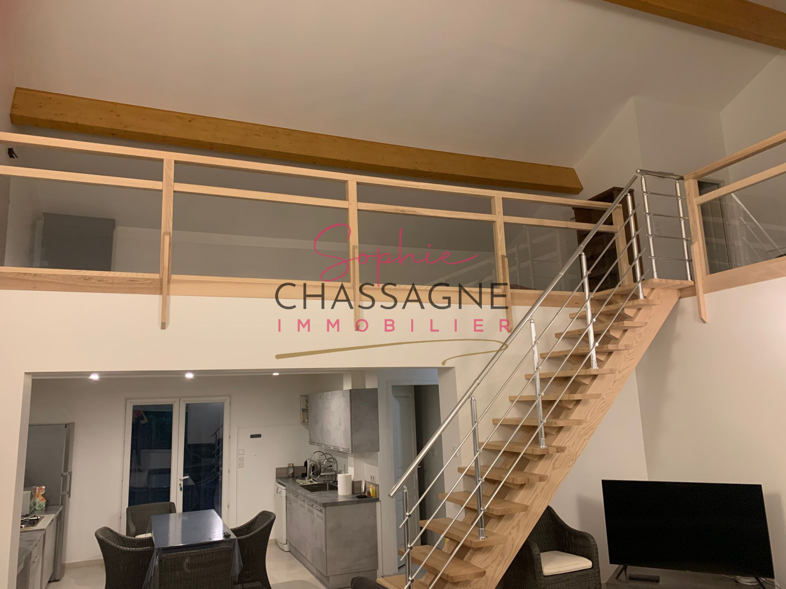 À l’étage, une mezzanine d’environ 50 m² et une pièce supplémentaire.