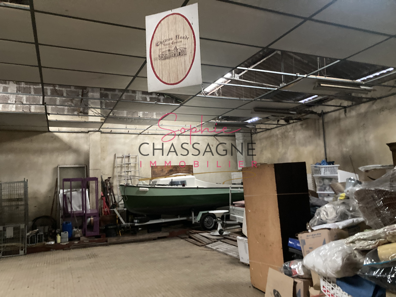 Branne (33420)Bâtiment en pierre de 360 m² composé de 2 parties ( une de 160 m² et l'autre de 200 m² ) communicantes avec 2 entrées distinctes actuellement à usage de garage et entrepôt.