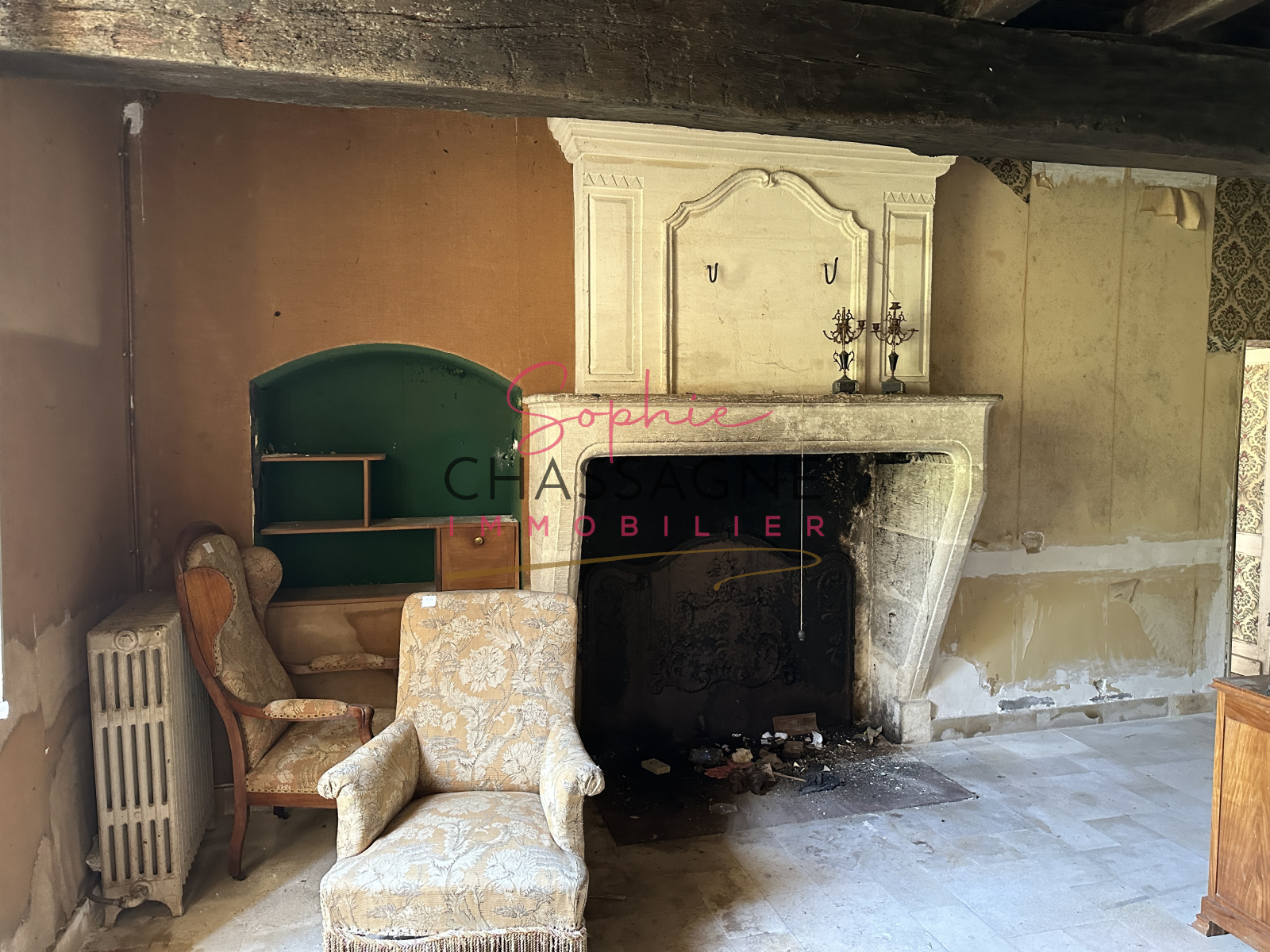 Branne (33420)EXCLUSIVITÉ : A Naujan et Postiac, à 10 minutes de Branne, dans une future résidence sécurisée, lot en pierre de 85 m², viabilisé, à rénover avec un étage composé au rez-de-chaussée d'une pièce avec une cheminée en pierre